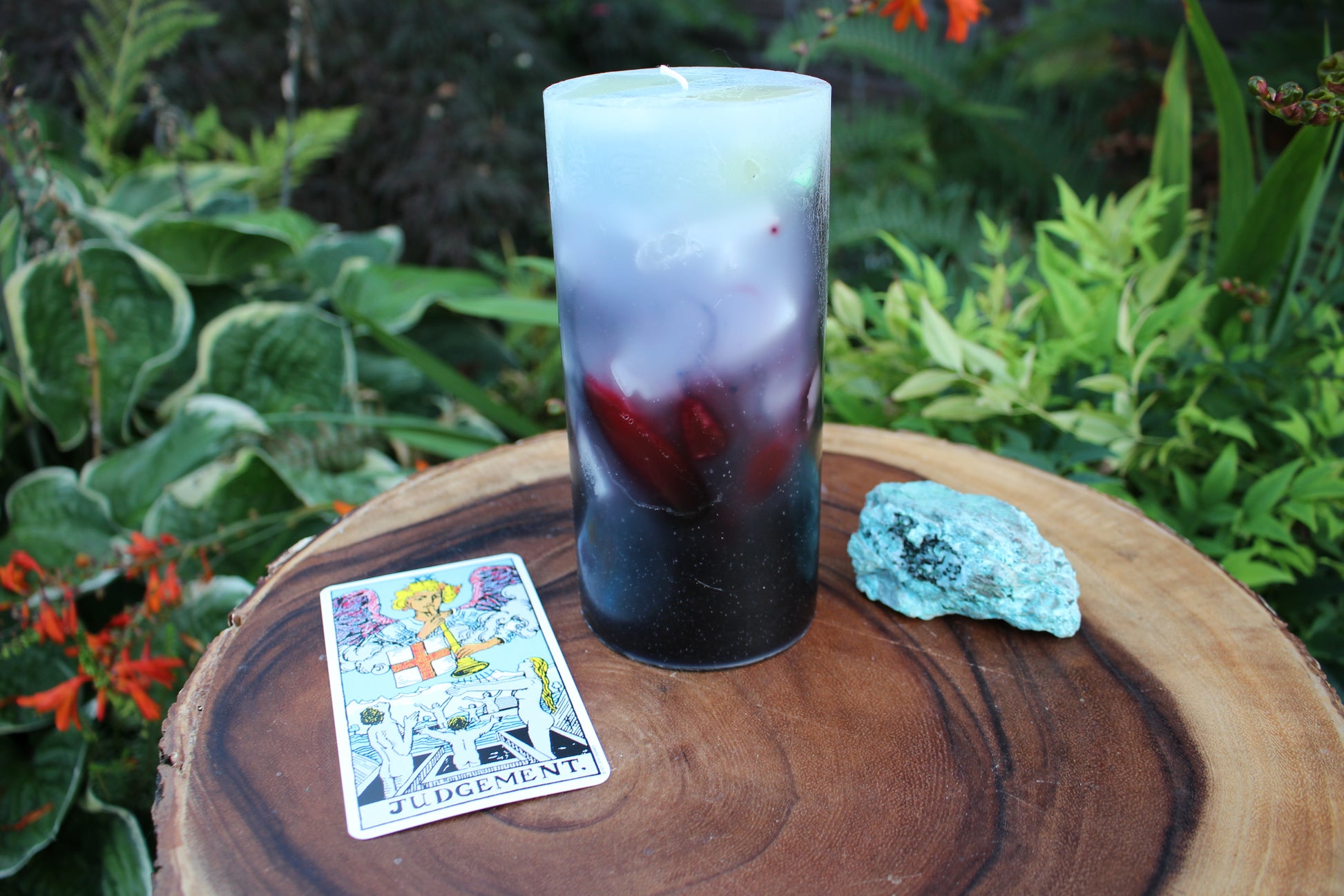 Embedded within Judgement’s essence is chrysocolla, a stone renowned for its ability to foster clarity and honest expression. This crystal helps you uncover your inner truth, guiding you to communicate with authenticity and courage. Judgement empowers you to release outdated narratives and step confidently into a new phase of growth. It inspires a deep alignment with your purpose, urging you to embrace transformation as a path to true self-realization.