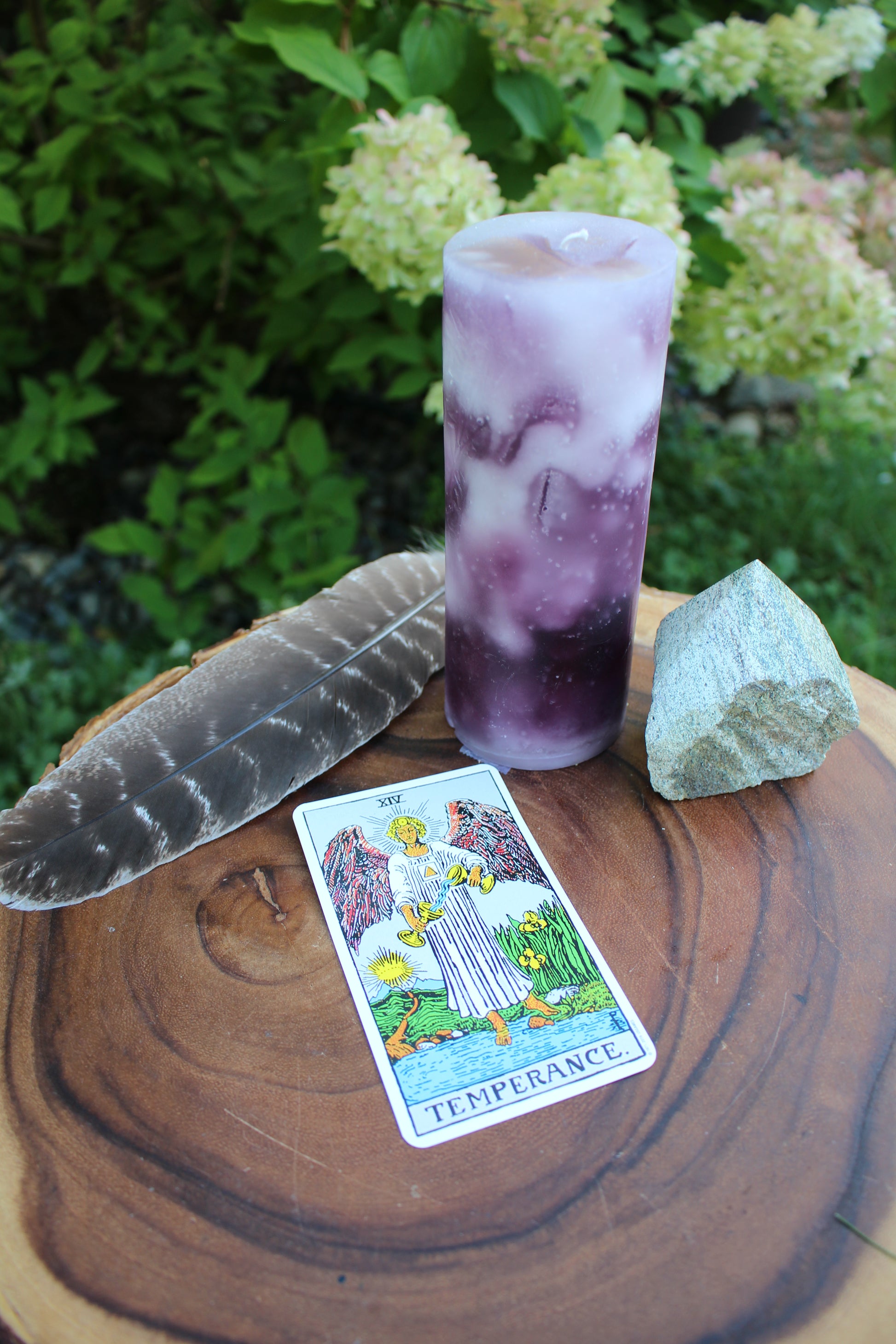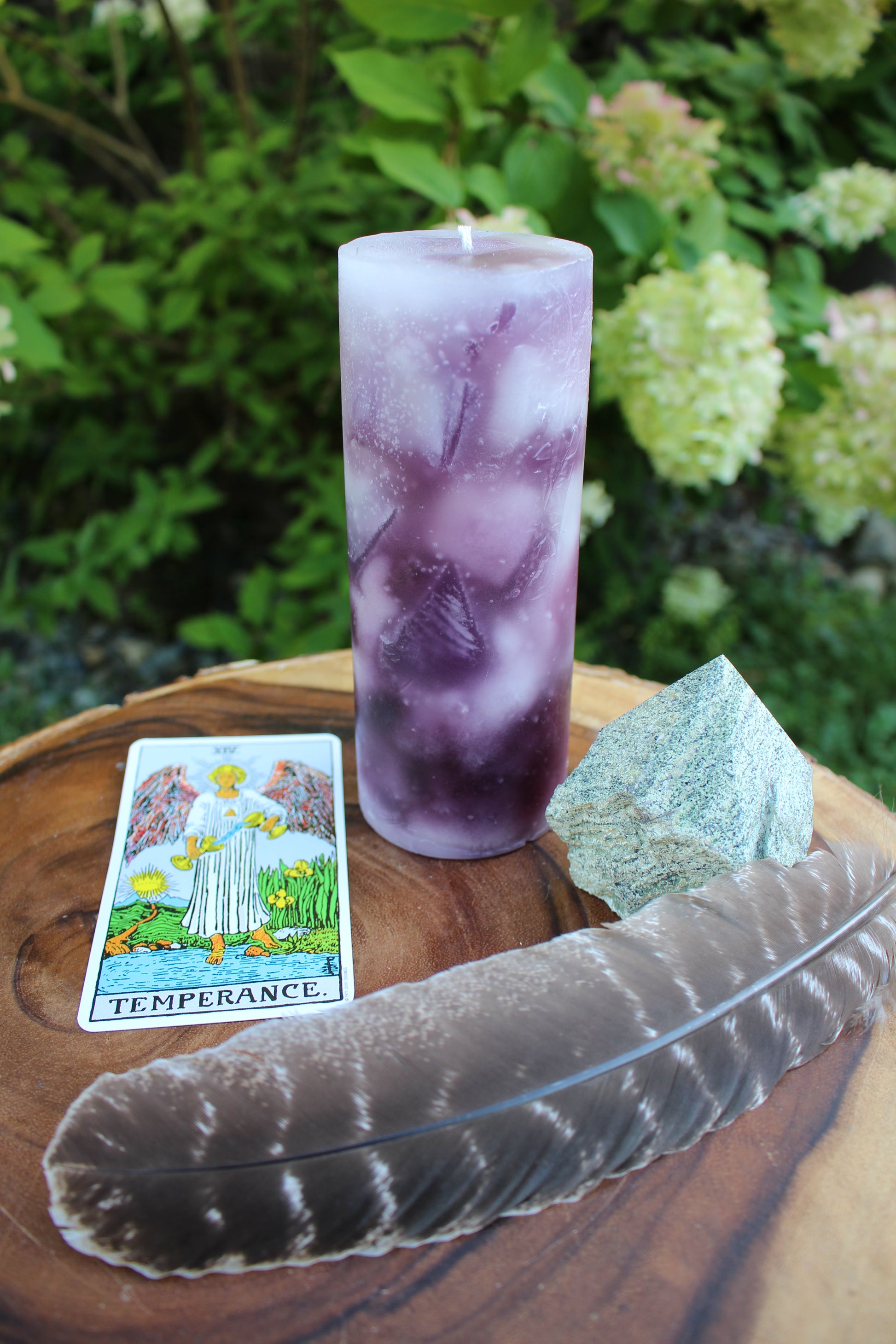 Temperance invites you to explore the beauty of balance and the art of blending contrasts. Her soothing colors of purple and white symbolize spiritual harmony and the unification of dualities. The warm, grounding aromas of tobacco and bay leaf provide a sensory anchor, encouraging mindfulness and reflection. In her presence, you are reminded that moderation and thoughtful action create the foundation for a peaceful and fulfilling life.